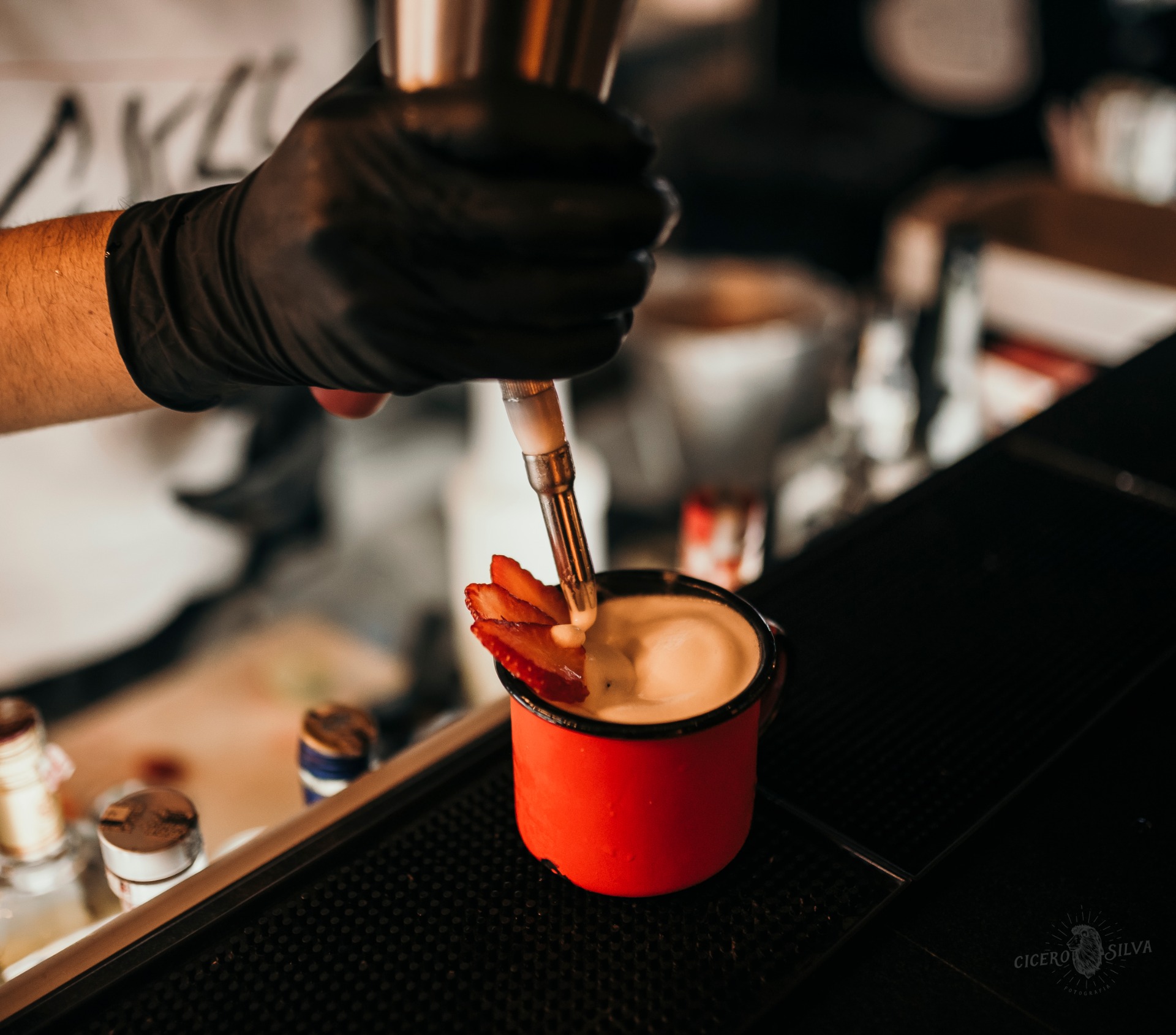 VODKA SUCO DE LIMÃO, XAROPE DE AÇÚCAR E ESPUMA DE GENGIBRE